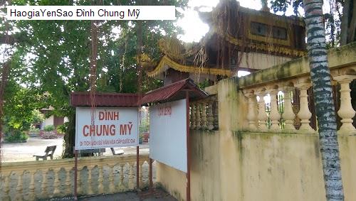 5 /5 Khôi Việt TL: Đình Chung Mỹ thuộc thôn Chung Mỹ, xã Trung Hà, huyện Thuỷ Nguyên là ngôi đền thờ Hưng Trí Vương Trần Quốc Hiện, một vị tướng tài dưới vương triều Trần, có nhiều công lao trong sự nghiệp chống đế quốc Mông - Nguyên, đặc biệt là cuộc kháng chiến lần thứ ba vào năm 1288.