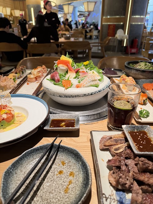Tuy không đặt trước nhưng đi sớm nên được xếp ngồi bàn ngoài, sát lối đi lại. Đầu tiên là được phát cho ipad để gọi món những ipad lỗi, vẫn phải gọi nhân viên ra để gọi xác nhận lại bt. Sau khi lên được đậu nành lông thì mãi về sau mới lên set sashimi. Nhân viên bê ra không mang set đồ chấm và cuốn, mình đợi mãi không gọi được nhân sự , làn 2 gọi 1 bạn khác đang phục vụ gần đó, kêu mang đồ chấm ra bạn chạy đi và không thấy quay lại luôn.