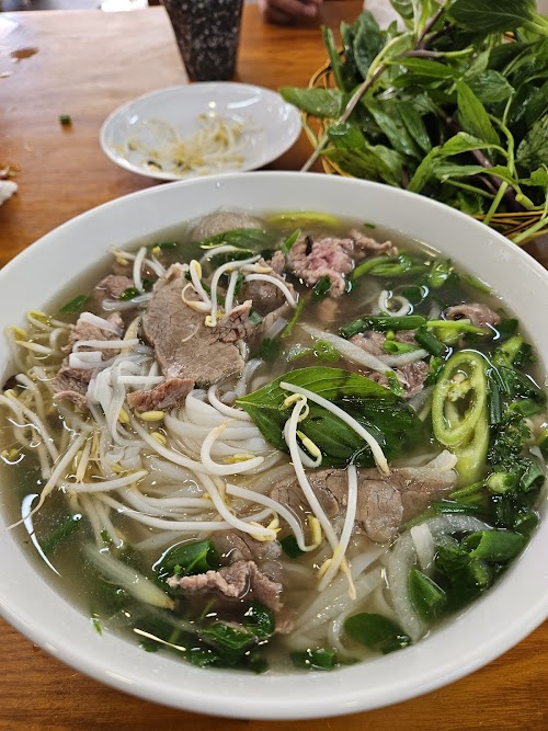 Nước phở thanh, nêm nếm vừa ăn, không xộc mùi quế hồi, ai ăn nước trong thì dặn trước.