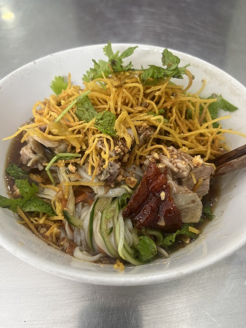 Về thực đơn, mình đã gọi hai phần nổi bật nhất: Phở chua đặc biệt (55.000đ) với đầy đủ nem và thịt heo quay, cùng một phần Phở chua vịt quay (65.000đ). Điểm cộng lớn là thịt vịt và heo quay được chế biến thơm, da giòn, măng chua ăn kèm rất đúng điệu. Dù vậy, mình thấy lượng đồ ăn hơi ít so với mức giá này, người ăn khỏe có thể sẽ cảm thấy chưa thực sự no bụng. Không gian quán tuy nhỏ, chủ yếu phục vụ cư dân nội khu nhưng bù lại khu vực để xe rất thoải mái và mát mẻ.