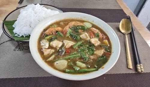 Nhưng quán ăn thì phục vụ thôi là chưa đủ, quán nên cải thiện lại công thức tất cả các món, mình gọi tầm 5 món nhưng chưa có món nào vừa ý, nó cứ bị nửa vời( cơm chiên thì nhảo, hạt cơm không được tơi; món trứng thì mặt ngoài chiên cũng không tới chỉ xém vàng, sốt thịt cũng không ngon; pad Thái thì siêu tệ, cọng bấy mềm nhủn; thịt chiên thì ngậm dầu khô sốt chấm thì dở...)