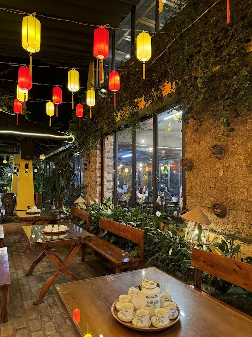 4 /5 PHAN NGỤY TRƯỜNG: Quán khá lớn, thiết kế hiện đại, có không gian rộng, được phân chia thành 4 khu khác nhau. Có cả khu vực trong nhà và ngoài trời. Nhìn từ ngoài vào rất đẹp, (buổi tối nhiều đèn trang trí nhìn lung linh luôn). Nhân viên phục vụ chu đáo, nói năng nhẹ nhàng và khá kiên nhẫn. Luôn có nhân viên trực ở khu gần bàn khách ăn do vậy có yêu cầu gì khá tiện lợi. Đồ ăn cũng ổn, giá cả phải chăng. TUY NHIÊN MỖI ĐĨA RAU, THỊT đều rất nhiều, dù bạn đi 1 hay 2 người cũng làm đĩa theo định lượng đã định. DO VẬY, nếu đi ít người NÊN CÂN NHẮC ĐỂ ORDER ít món, điều này cũng đồng nghĩa giảm cơ hội thưởng thức nhiều món.