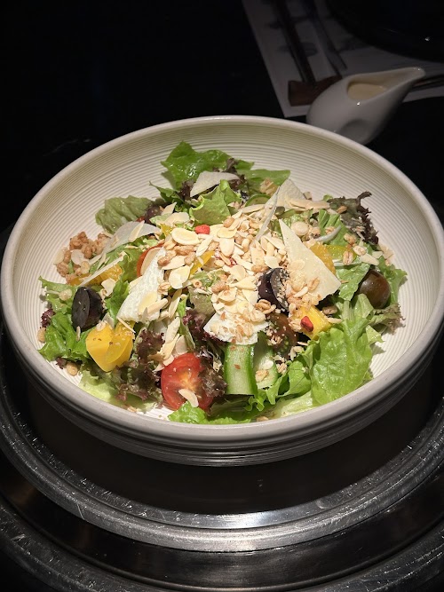 5 /5 Quang Thach Le: Quán có thiết kế bắt mắt. Menu dễ xem. Nhân viên lịch sự. Chỗ ngồi hơi kích, nhưng chắc cố tình làm thế cho hợp với kiểu quây quần đồ nướng. Salat và Trà hoa quả ok chất lượng. Món steak mình gọi là Diềm bụng bò 130g. Ăn thấy hơi thiếu, cũng may có món trứng hấp chào miễn phí nên cũng đỡ. Mà hình như món nào cũng 130g, ko rõ lắm vì mình quen gọi nhanh ko dành thời gian xem menu như đọc truyện. Cảm nhận là medium rare mình gọi ở đây làm hơi khô. Quán style Hàn quốc nên auto món steak kèm luôn 4 loại sốt. Món chào cũng kèm luôn 6 đĩa đồ muối. Để đầy bàn trông vui mắt mặc dù mình cũng ko dùng mấy. Ko thích ăn cùng với steak. Lúc thanh toán nhân viên có hỏi về phản hồi, nhưng nhân viên dùng tablet quay đi ko cho mình xem để bạn ấy tự vote 5 sao. Mình mắt dân đua xe nên nhìn nhanh lắm.