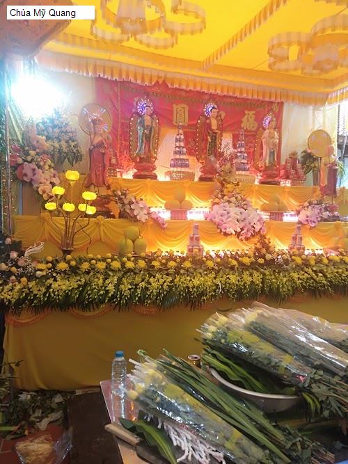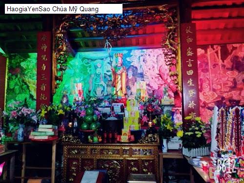 3 /5 HÀ THANH GIANG: Chùa Mỹ Quang được xây dựng vào khoảng giữa thế kỷ XVIII đến đầu thế kỷ XX, và đã qua nhiều lần trùng tu. Hiện nay, chùa ở trên khoảnh đất chừng 400m2 , cổng chùa hướng đông - đông nam. Chùa chính Phật điện xây hình chữ Đinh, gian ngoài 3 gian, 2 chái bít đốc, nóc cao 6m theo lối chồng diêm, 2 tầng, 4 mái. Sau chùa chính là 5 gian bái đường dẫn tới nhà thờ Tổ và nhà thờ Mẫu. Trước chùa có 3 ngôi tháp và 2 nhà bia. Nhà bia lớn có 1 tấm khắc tên những người cúng công đức xây dựng chùa, dựng năm 1934; nhà bia nhỏ không còn bia.