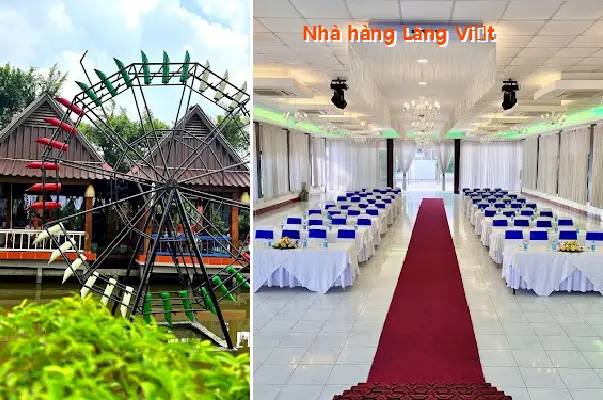 * Không gian: Nhà hàng Làng Việt được biết đến với không gian rộng rãi, thoáng đãng, có các khu vực riêng tư thích hợp cho gia đình hoặc họp mặt bạn bè. Nơi đây còn có khu vui chơi cho trẻ em.