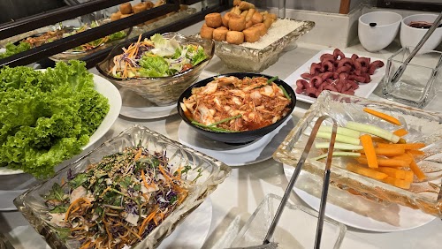 5 /5 Vi i ngắn: Tụi mình có đặt bàn trước chứ Tết tây rất đông. Quán có phục vụ buffet và gọi món. Buffet theo set nên sẽ đc phục vụ tại bàn, quầy line nhỏ thì có đồ chiên, salad, kim chi, rau ăn kèm, chè, rau câu, trái cây, nước (chỉ có trà sữa)...
